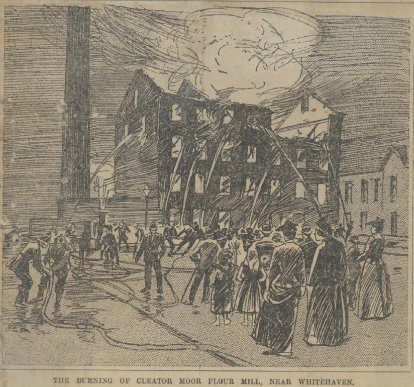 So, the fires once started could spread like wildfire and could be deadly. Reports of death, whilst not necessarily frequent, were not that rare either. The report of the fire at Cleator Moor Flour Mill near Whitehaven, whilst short, did contain the fact that ‘One man lost his life by falling twenty feet from a ladder while attending to a hose’. Fighting the fire could be just as perilous making ‘A Spectator’s’ actions even more remarkable when he and others rushed into the mill building armed only with buckets to put the fire out…