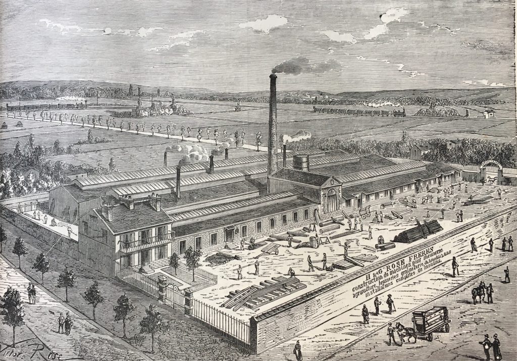 I am continuing to mine the rich seam on milling engineering works described in The Miller during 1885. Each features the manufacture of “milling machinery and appliances belonging to the miller’s art”. The 5 October issue featured the workshops of the French firm MM Rose Frères at Poissy in the department of the Seine-et-Oise.