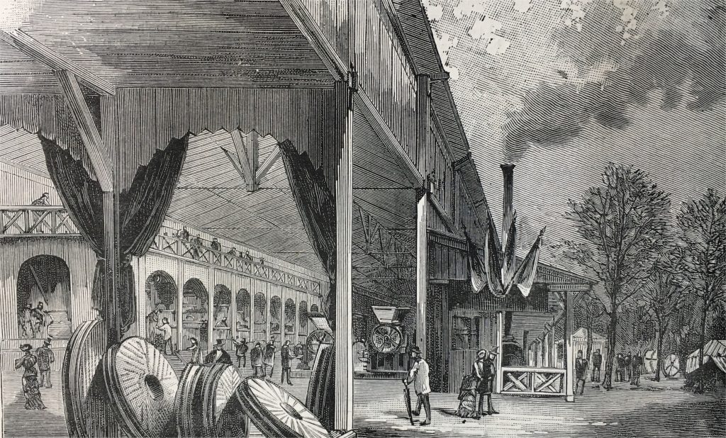 This illustration shows the Poissy workshops which had expanded since its foundation in 1865, so that by 1885 it was second to no other factory of the same kind in France. Production within the factory covered every description of machinery used in flour mills, breweries and distilleries. At the same time the wants of the workforce were well cared for. The works covered 7,000 square meters, of which 4,500 were occupied by workshops employing 200 workmen. The motive power of the factory was supplied by a fine engine of 50 horse power, supplied by Messrs. T Powell & Co., of Rouen.