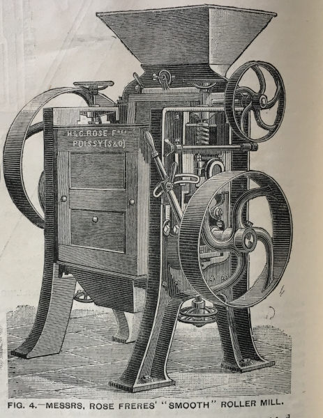 MM. Rose Frères did not neglect the reduction of grain by millstones. They took across the Channel the disc mill of Messrs Higginbottom and Stuart of Liverpool for breaking wheat, and fitted it in some important mills in France. They made roller mills, both corrugated and smooth, and visitors to the Milling Exhibition at Paris in 1885 would have been struck by the solid and handsome structure of the mills on their extensive stand.