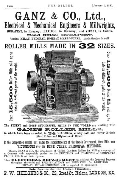 During the 1890s, the dominance of Ganz designs and rollers began to diminish as competition grew. Indeed, ‘Ganz, Simon, Turner, Robinson, Whitmore and Cornelius all fought for the Australian roller-mill business’ and it was eventually ‘the British firms, Thomas Robinson and Henry Simon’ who gained ‘the upper hand’ (Jones, p.24).
