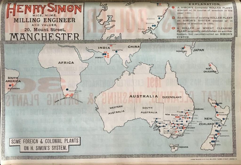 Robinson’s biggest competition would come from Henry Simon Ltd. Henry Simon had built offices and workshops in Sydney during the 1880s due to the custom he was already receiving and in hope of more. Messrs. Fielder and Sons of Phoenix Mills from Tamworth, New South Wales, were one of the first to install Simon machinery in New South Wales in 1890. However, this was not the end of their association with that company as twelve years later, they returned to Simon to upgrade to a ten-sack plant.