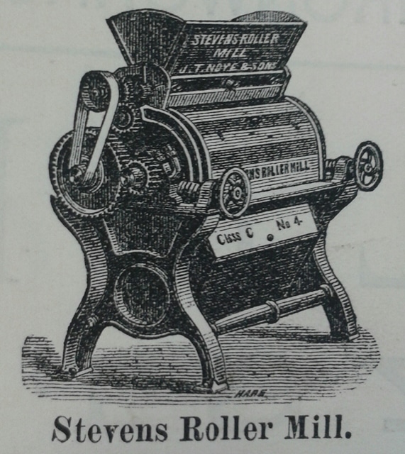 The Islington exhibition was the catalyst for the roller mill revolution to truly begin in Britain, and W. R. Dell & Son felt the benefits. The sale of Smith’s middlings purifier increased from 53 in 1880 to 200 in 1883. The firm also continued to sell wheat cleaning machinery and c.1882, became agents for the John T. Noye Manufacturing Company, adding the Stevens’ roller mills, the Cosgrove Concentrated Roller Mill and, later, the Rounds Sectional Roller Mill to their stock. Despite the success of this new American machinery, Dell continued to produce millstones throughout the 1880’s and the number they sold remained fairly stable: 1880 – 416; 1881 – 411; 1882 – 460; 1883 – 443.