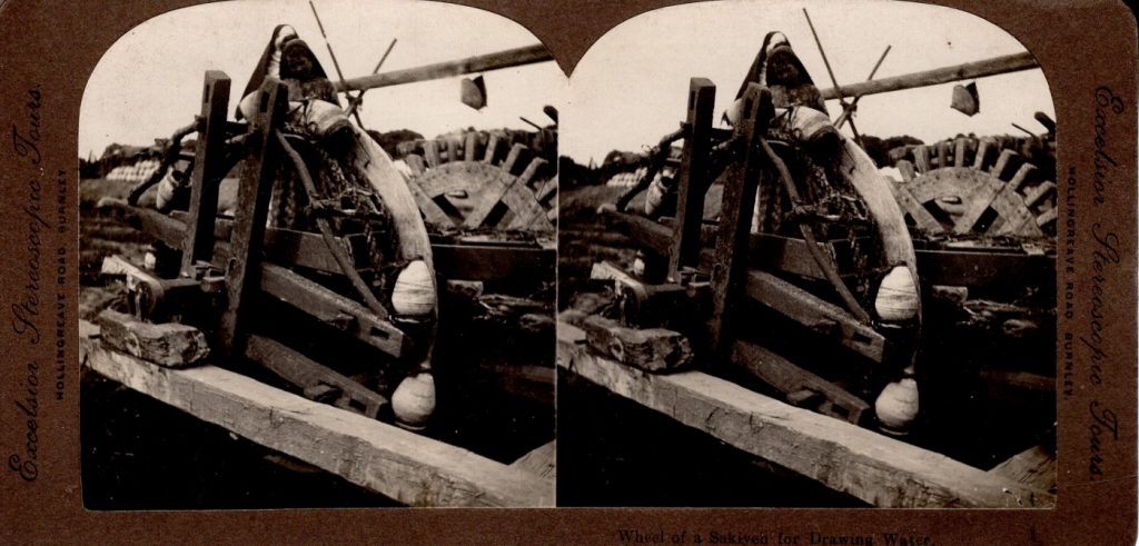 - Saqiya Wheel: Stereographs brought exotic locations into the Victorian Parlour Room. Learn more about the Egyptian Saqiya wheel depicting in the stereograph here.
