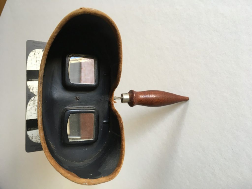 This amusing Gem, a stereoscope, was a popular Victorian device used to view optical illusions. The stereoscope was a pair of lenses through which picture cards, or stereographs, would be viewed. The cards had two almost identical images next to each other, which when observed through the lenses would appear to fuse together right before the user’s eyes. The device uses trickery of the brain to create an optical illusion: the viewer would see the image come to life in 3D, almost jumping out at them! This had a great appeal, captivating the minds of thousands throughout the Victorian era – it was said that every Victorian home of all classes owned one. They must have seen almost like magic to Victorians who were unused to moving pictures.