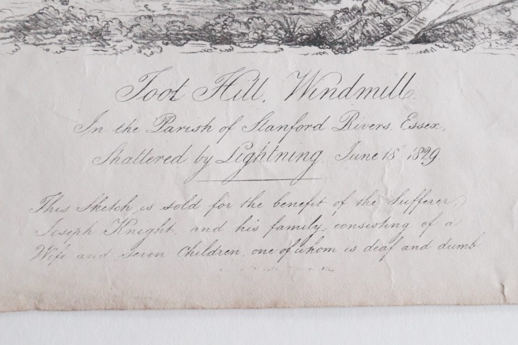The Toothill engraving above contains a lot more detail of the explosion and injuries. Windmills in exposed places were often the victim of lightning strikes, many of which resulted in a fire consuming the mill.