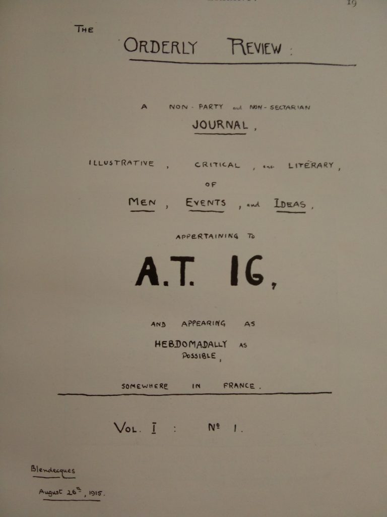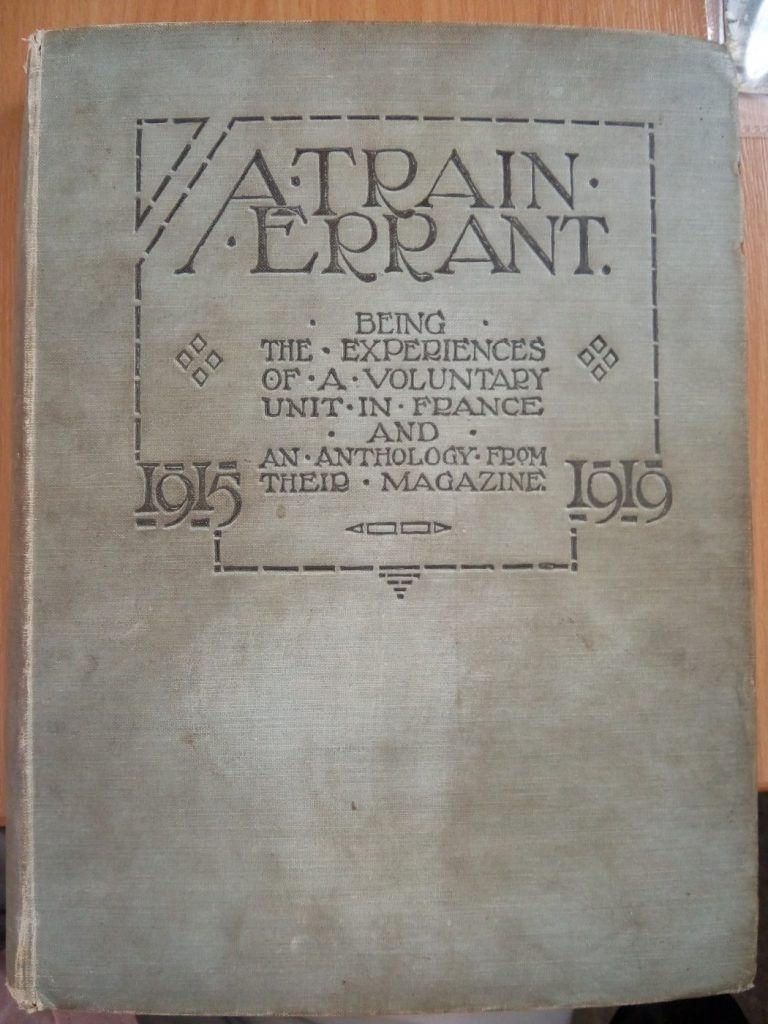 This book called A Train Errant shines a light on a little-known aspect of the First World War. The book contains a bound collection of newsletters called The Orderly Review, which were published on board Great War Ambulance Train No.16, which was donated to the war effort by the UK Flour Millers. The Orderly Review was quite a varied publication, describing itself as ‘Illustrative, critical and literary’, with handwritten contributions ranging from essays on Gothic architecture, adverts mocking pastries and reports of the nature that could be seen from the train windows.