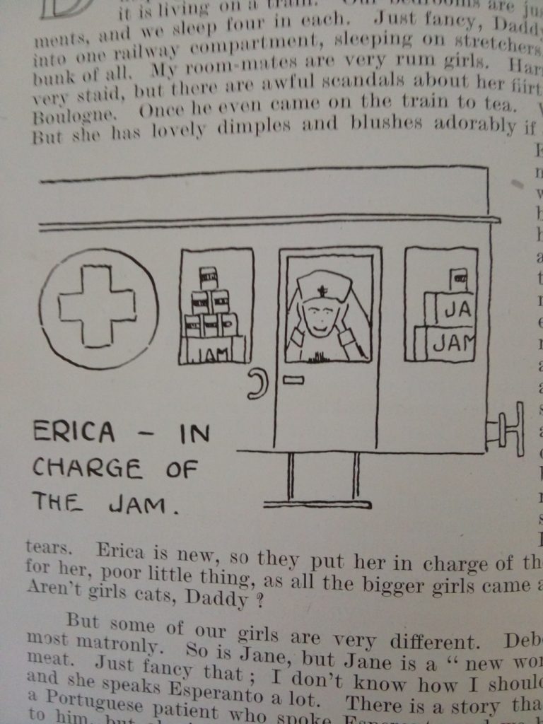 The Gem itself is a sketch from one of the newsletters of an incident that occurred on the 21st March 1918, when two bombs landed squarely on the ambulance train whilst it was boarding wounded soldiers at Agnez. The trains were painted with red crosses on the outside to show that they were carrying the injured and should be exempt from shelling, but the enemy were not always merciful, and there were reports of trains having to hide in tunnels to escape the bombs. This train didn’t make it to shelter in time, but the article describes how although the whole side of the coach was wrecked, miraculously nobody was killed and only two people sustained very slight injuries. The incident must have been quite a shock to those on board, but luckily they lived to write about it in the paper! The report states: