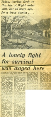 This Gem is a newspaper cutting from The Southern Echo, a regional tabloid newspaper covering Hampshire and the Isle of Wight. The article, which was published on 14th March 1978, looks back to an Isle of Wight lady called Mrs Emma Weeks, who operated Upper Calbourne Watermill by herself whilst looking after nine children in the early 20th century. Following the death of Emma’s husband, the miller, in 1903, she was left to care for their four boys and five girls, who were all under the age of 12 years old. Taking over her husband’s watermill was a matter of necessity, as she was left with no other way to put food on the table and a roof over her family’s heads. Unfortunately, back in 1903 a woman’s place was traditionally seen to be in the home, especially in rural farming communities like on the Isle of Wight. In the article, Emma’s last surviving son, Ronald, recounts that she used to go to Newport market on a pony and trap to get orders from farmers who wanted grain crushed for their animals, but she was not easily accepted by the community:
