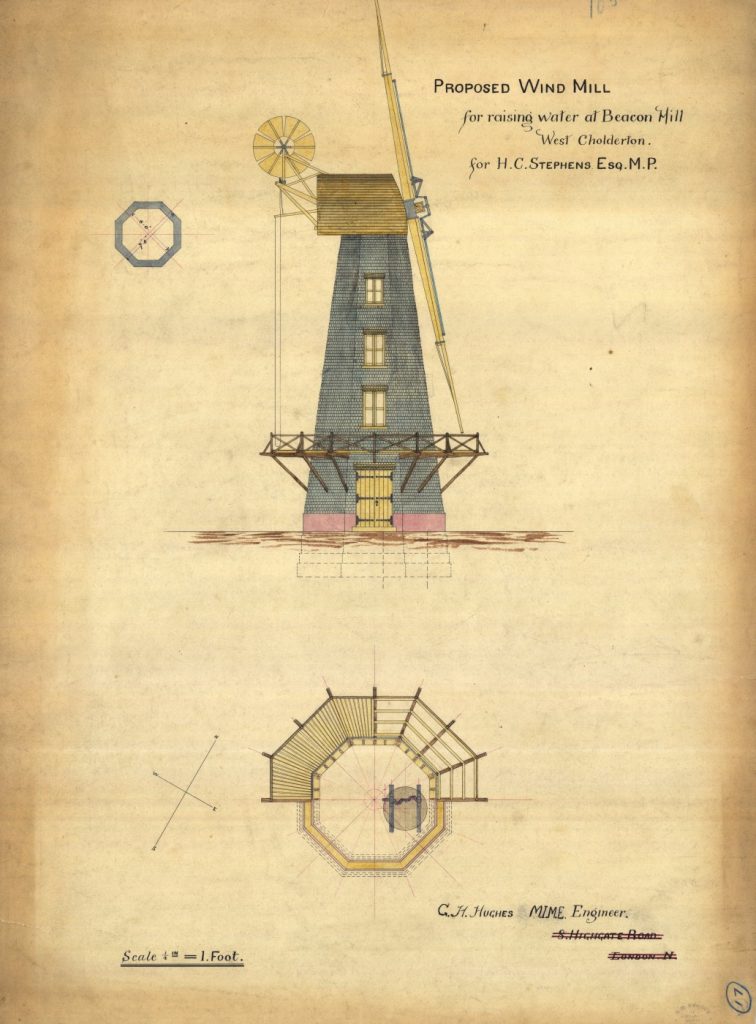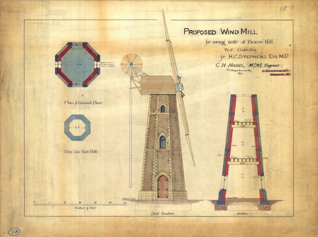 This Gem is a series of designs which were drawn for a proposed windmill that would have driven pumps for water as part of the country’s smallest water company. The designs were for H.C. Stephens Esq, a highly successful businessman, M.P. and well-loved philanthropist. His father, Dr Henry Stephens, invented an indelible ink, and upon his death, H.C. Stephens took over production and turned it into a highly lucrative business for which he was given the nickname ‘Inky Stevens’. This ink remains today the only ink you are allowed to use for legal documents and ships logs and was used to sign the Treaty of Versailles.