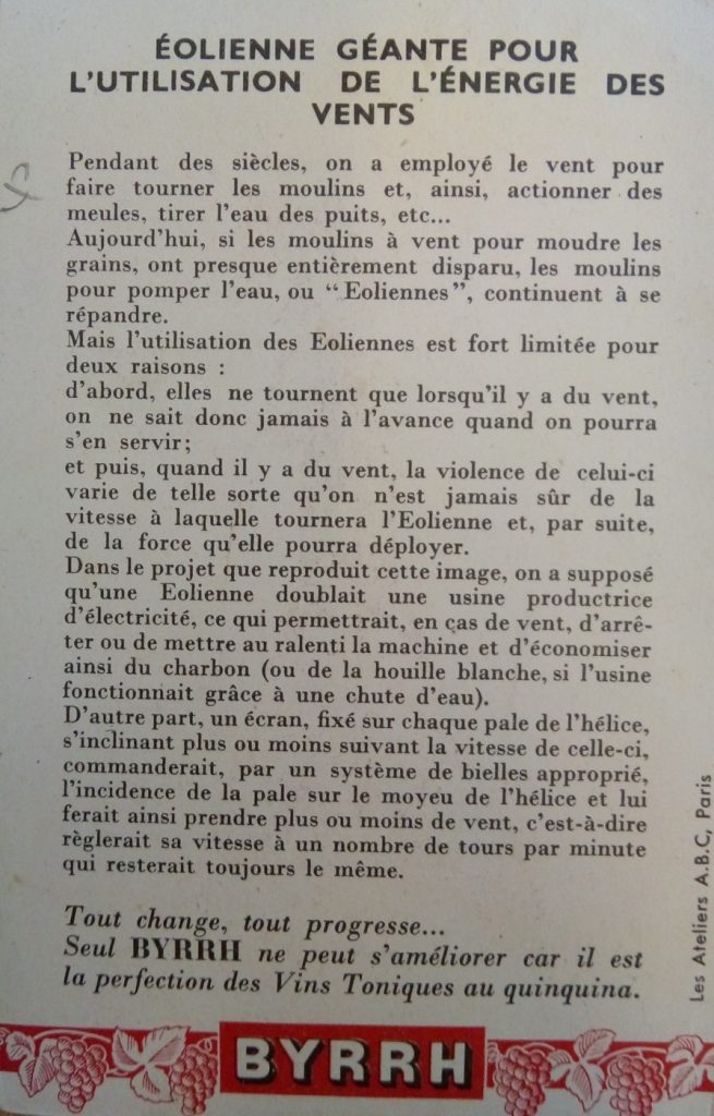 The gradual change from traditional windmills to modern wind turbines in generating power would have been at the forefront of the public psyche at this time, which is reflected in the concluding phrase on the reverse of the trade card: