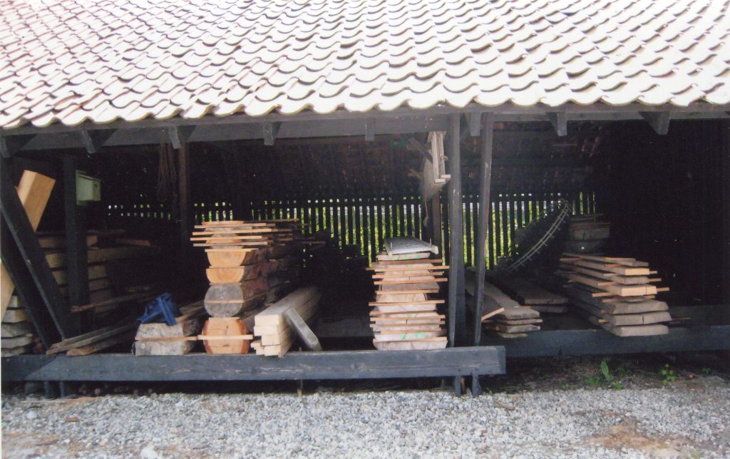 In the UK water powered saw mills were usually built where water was easily available and many were on country estates. This would help the owner with repairs to his properties and also for firewood. Some were purpose built and others were attached to a watermill producing flour. On Mapledurham Estate in Oxfordshire a saw bench was built outside the watermill driven by the waterwheel, this was for sawing wood for the Estate. (see image) Another one still surviving is on the Ingleborough Estate in Clapham in the Yorkshire Dales, driven by a turbine.