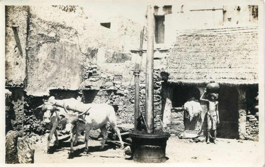 In India the Ghani was the traditional way of extracting oil and goes back 2,500 years. In appearance it was in the form of a large mortar and pestle, an animal being harnessed to move the pestle, it is one of the very early methods of crushing seeds. The Romans added their contribution by using a lever and screw press.