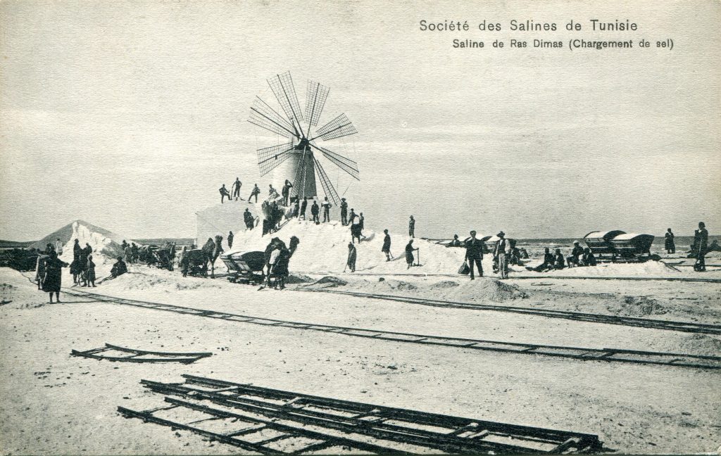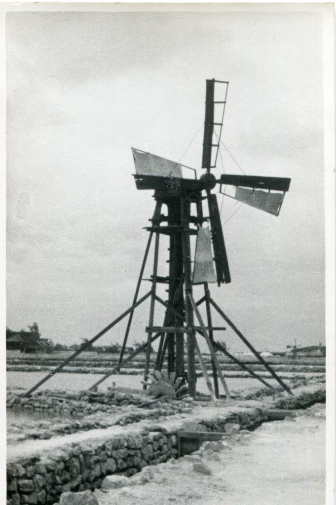 Sea salt is produced by collecting sea water in ponds and allowing it to evaporate, leaving behind salt crystals. Windmills were used to pump the water from one pond to another, and also to grind the salt crystals.