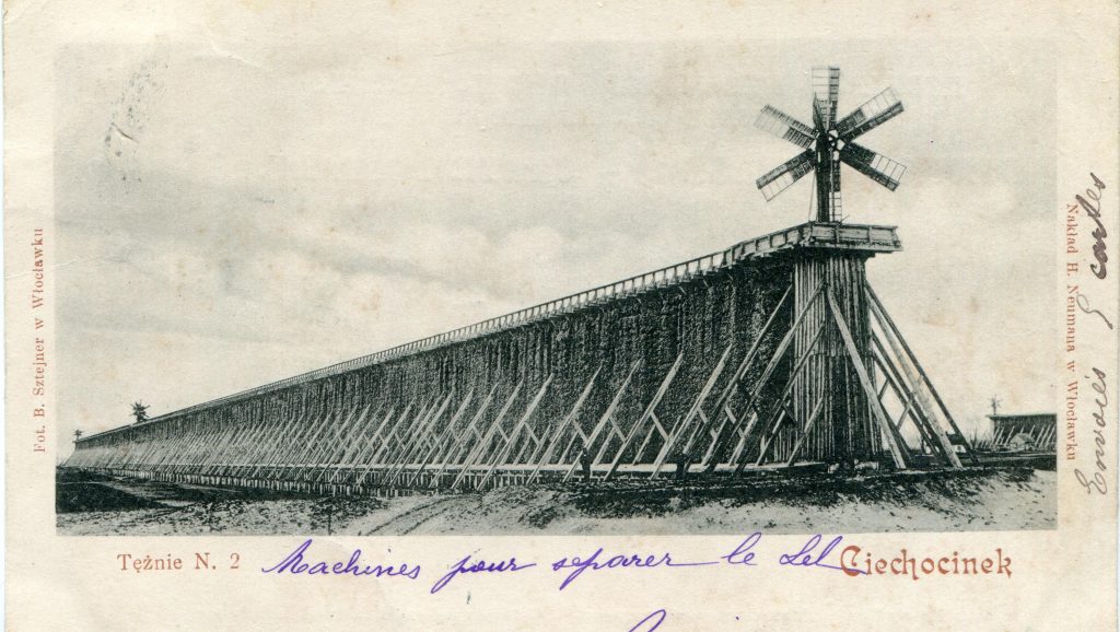 In Poland and Germany graduating towers were used to increase the salinity of brine by running it over thorny hedges. A certain amount of water would cling to the twigs and thorns of the plants. They were long, high wooden constructions with small iron windmills along the top.