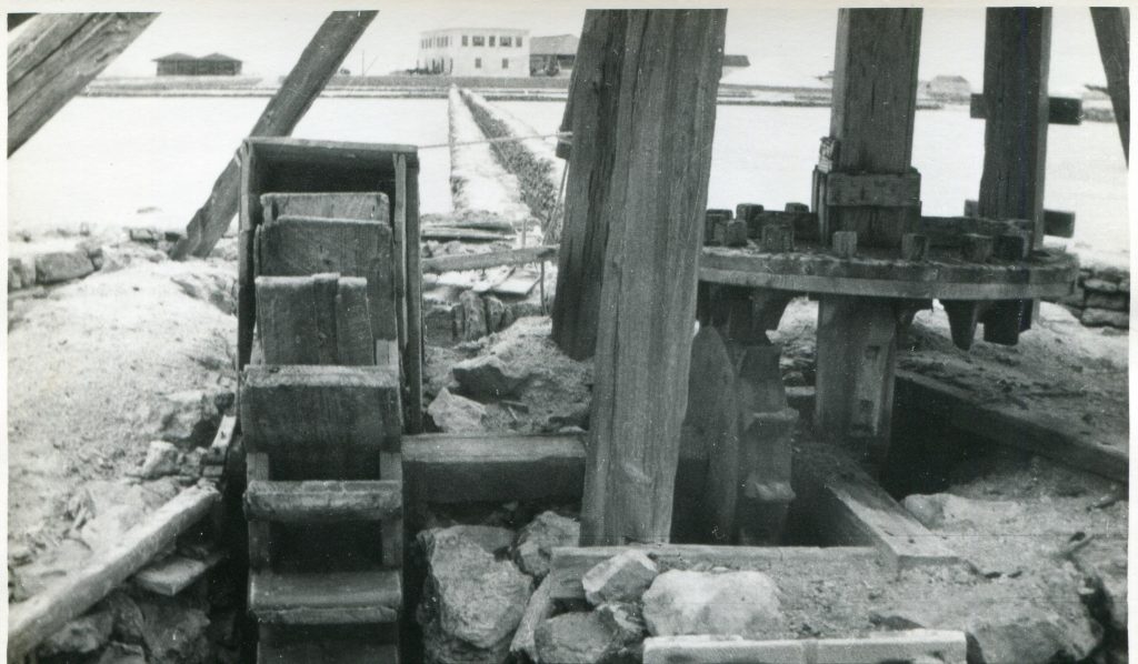 There are two types of salt, sea salt and rock salt. Usually windmills or windpumps are used in sea salt production which is by the evaporation of sea water, whereas rock salt (halite) is found underground already in a solid form then mined. In the mines would be a lifting device to bring the salt to the surface, this could be a horse powered wheel or even a human treadwheel.