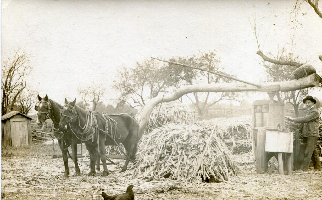 In the sugar mills the cane was squeezed through a set of 3-6 heavy rollers. Originally they would have been vertical wooden rolls, replaced by steel ones as the process evolved. This produces the juice which can then be refined to make sugar. It was important during the harvest season that the mill worked day and night, except for emergencies when the cane got jammed in the rollers. Once the cane is cut the juice starts to flow and the canes must be put through the mill quickly, within 24 hours, or the juice will start to deteriorate and start fermenting, making it useless for production.