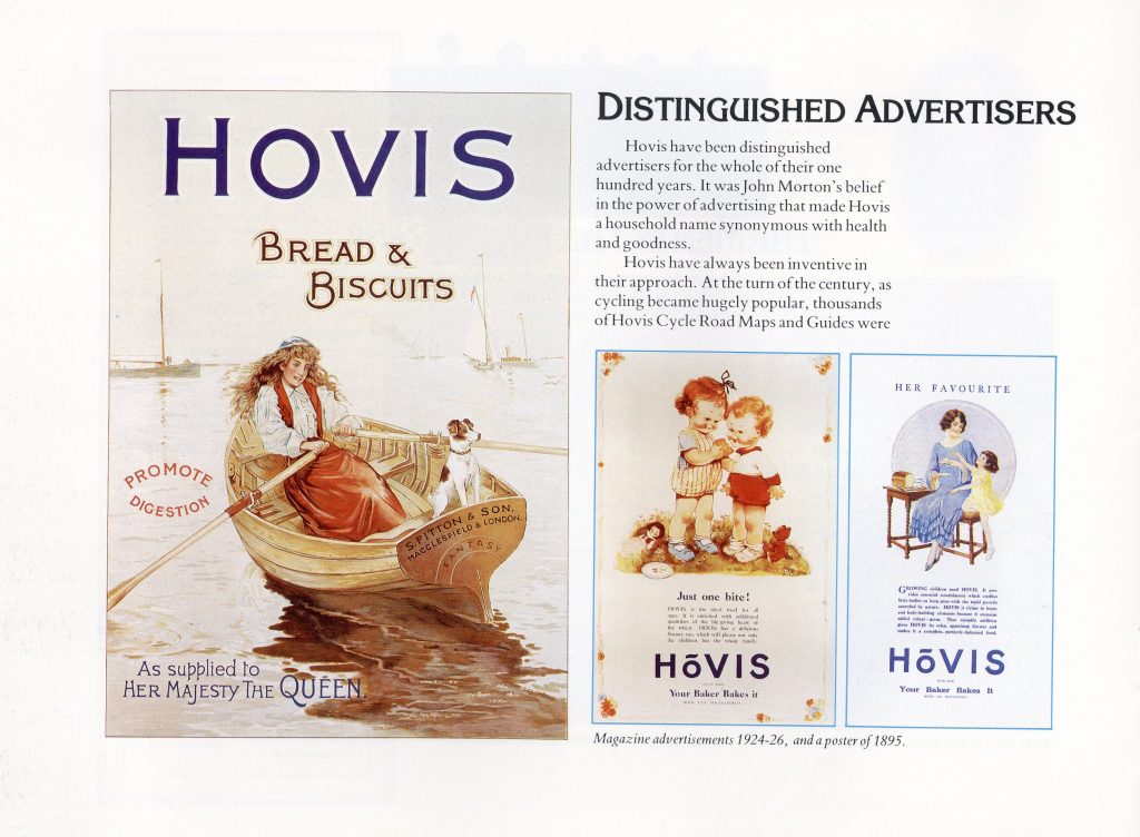 J F Morton was promoted to manage the sales staff which numbered five in 1889 but had grown to 30 salesmen and commission agents by 1905. He never stopped inventing ways to make Hovis synonymous with health and goodness. Advertising signs were attached to delivery bicycles and sign writers were sent to write Hovis above the doors of Hovis bakers. Loaf tins impressed with ‘Hovis’ were sold to bakers to make ‘Hovis loaves’ which became very popular with loyal customers. The company also held regular baking competitions and promotions for bakers and the public.