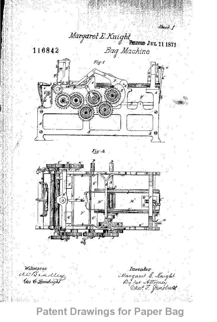 However, this device was only the first of many of her inventions. Margaret left the textile mill in her late teens, working her way through several jobs to help support her family. After the Civil War she found work in Massachusetts at the Columbia Paper Bag Company making bags by hand. It was here that she made her name inventing a paper bag machine, which could automatically cut, fold and glue flat-bottomed paper bags. Up to then bags were envelope-style, with the bottoms glued together in a v-shape which limited how much the bag would hold. These flat-bottomed bags transformed the industry. An updated version of her machine was still in use at the end of the 20th century.