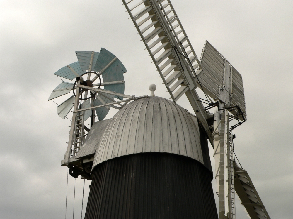 | Amongst the many windmills built or rebuilt during this period were tower mills at Heage, Derbyshire (c.1791), Marsh Mill, Lancashire (1794), Brixton Windmill, Surrey (1816), Maud Foster (1819) and Heckington windmills (1830) in Lincolnshire and Stevens’ Mill, Burwell, Cambridgeshire (c.1820) and smock mills, such as White Mill at Sandwich, Kent (1760), Upminster, Essex (1803) and Wicken, Cambridgeshire (1813). A feature of most windmills is that they need to be turned to face the sails into the wind. Edmund Lee’s 1745 patent drawing for a self-regulating windmill shows a fantail which, in theory would automatically bring the sails into the wind again. In 1782 John Smeaton in his design for Chimney Mill, Newcastle-on-Tyne, included a fantail which was set on a small stage attached to the back of the cap. Fantails were also used on post mills, sometimes mounted on a carriage at the rear of the mill, similar to Lee’s original design. |