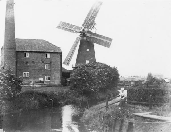 | Liz also selected this photograph of a mill near where she used to live in King’s Lynn, Norfolk. She particularly liked the women’s clothes, typical of the period, the composition of the photograph and the way the river, tower mill and steam chimney were all featured. | |