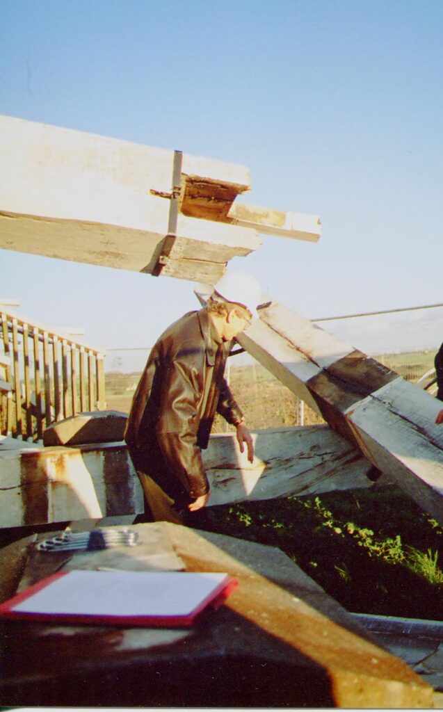 Vincent inspecting the damage at Chillenden Windmill after it unfortunately blew over in 2003. Vincent was instrumental in writing a report on his theory of how it occurred.