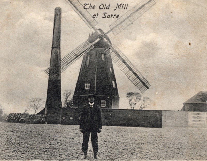 | The First and Second World Wars saw the British Government take control of the milling industry, which fortunately for both sides had already established the National Association of British and Irish Millers. The nature of warfare had changed such that flour mills were no longer just a military asset, but a national one to be directed accordingly. For example the windmill at Sarre was contracted to provide 250 sacks of flour each week to the barracks at Chatham, 40 miles away. In 1922 the mill stopped working by wind, the sweeps were sold to Union Mill Cranbrook and milling continued with a gas engine. | |
