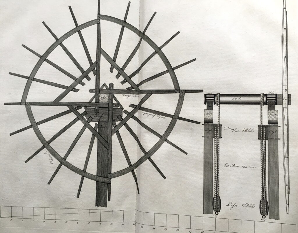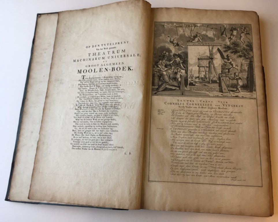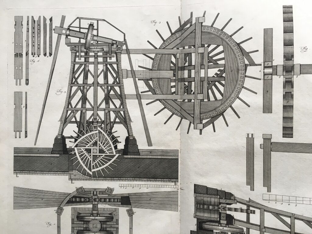 In our special collections here at the Mills Archive, we have an original copy of the Theatrum Machinarum Universale of Groot Algemeen Moolen-Boek, which translates as the Universal Theatre of Machines or Large General Mills Book, produced by Johannis van Zyl and Jan Schenk in 1734, and republished in 1761.