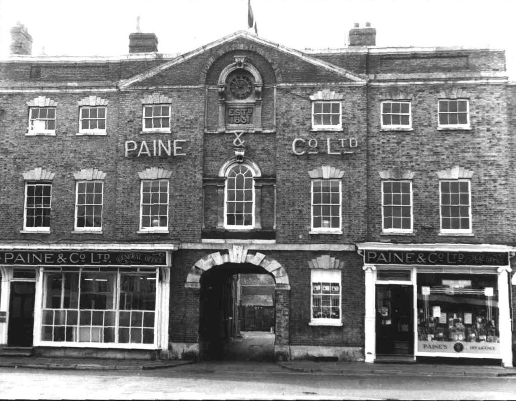 | The early 1900s saw devastation hit the Paine’s mills. First on 19 October 1905, the brewery and stone flour mill on the Market Square, known as ‘John Bull’ Mill, were destroyed by fire, and quickly rebuilt in 1906 – two more fires followed in 1947 and 1955 at their malt extract factory. The McNish family continued to run it until it closed in 1985 bringing to an end 150 years of family-run brewing in the town. The flour mill and a significant amount of original buildings survive and are Grade II Listed. |