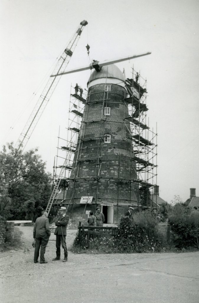 | The Hicks family continued to mill until 1910 when the mill finally ceased work after 123 years. In the 1930s the second Lord Blyth had the mill repaired and made over by deed of gift to the Stansted Parish Council, with Rex Wailes as a co-trustee. The mill was a Scout hut from the 1940s to 1963 and became a Scheduled Ancient Monument in 1952. In 1964 it was opened to the public, and restoration work was carried out in 1966 and again in 1984-5 and in 2010. It remains open to visitors today.ImagesThe mill in 1880 with the miller in the doorway REXW-ESS-73-06 https://catalogue.millsarchive.org/tower-mill-stansted-windmill-stansted-mountfitchet-3Rex Wailes at the mill REXW-ESS-73-08 https://catalogue.millsarchive.org/rex-wailes-stansted-windmill-stansted-mountfitchetNew sails and stocks, June 1966 REXW-ESS-73-30 https://catalogue.millsarchive.org/tower-mill-in-construction-stansted-windmill-stansted-mountfitchet-8The mill under repair, July 1966 REXW-ESS-73-20 https://catalogue.millsarchive.org/first-stock-being-fixed-tower-mill-stansted-windmill-stansted-mountfitchet |