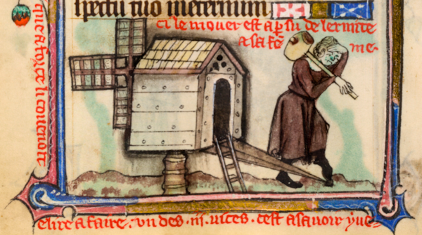 | Medieval manuscripts from the 13th and 14th centuries provide vivid and revealing portrayals of the milling world. Illustrated with remarkable detail and often embedded within moral or religious texts, manuscripts such as Books of Hours, the Smithfield Decretals, and other illuminated works reflect not only the technical aspects of milling but also its cultural and symbolic significance. This newsletter presents a selection of these manuscript extracts, offering a closer look at how mills, and the people connected to them, were depicted in the medieval imagination. |