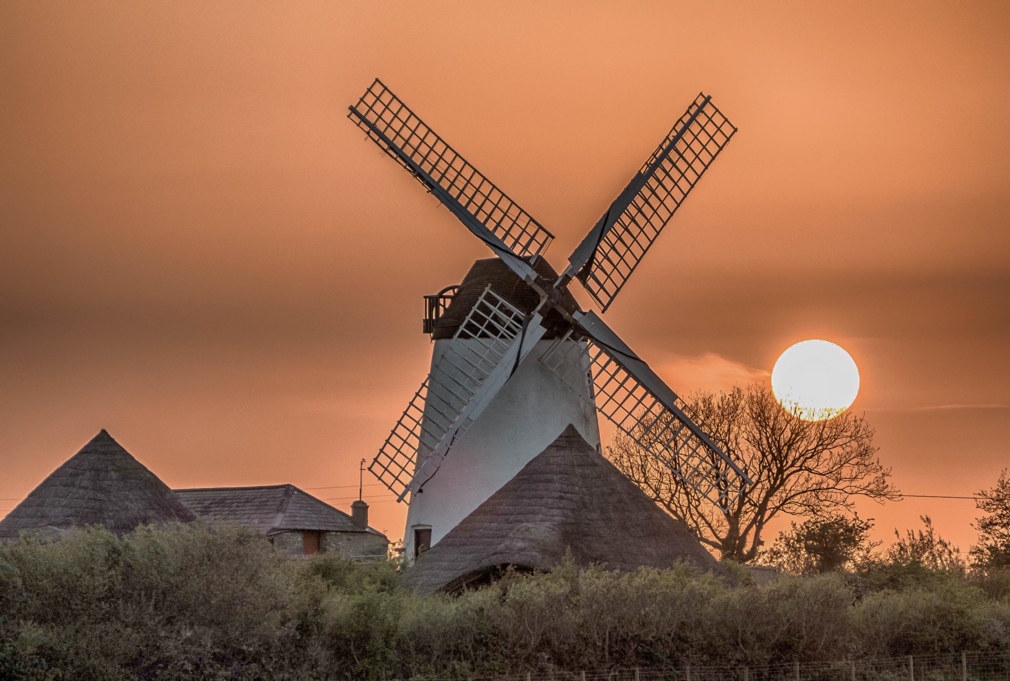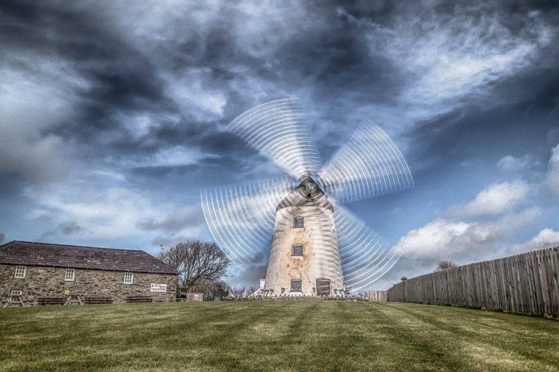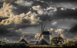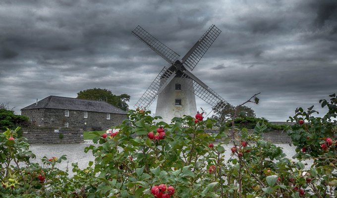 A wind-powered corn mill in the historic county of Anglesey, Wales.