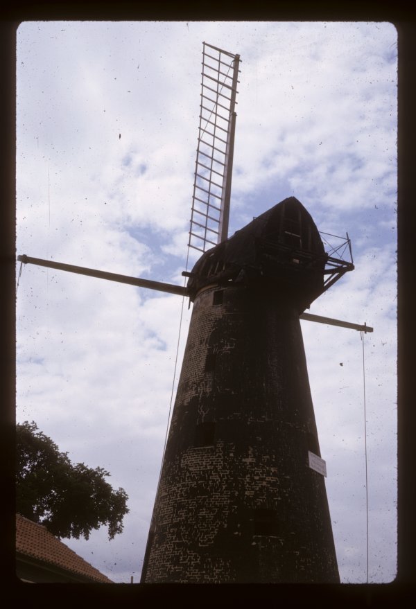 Side view of the restored mill, a colour print taken by Guy Blythman in 1971, a few years after the repairs were completed