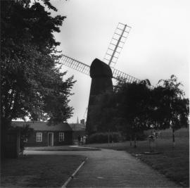 A wind-powered corn mill in the historic county of Surrey, England.