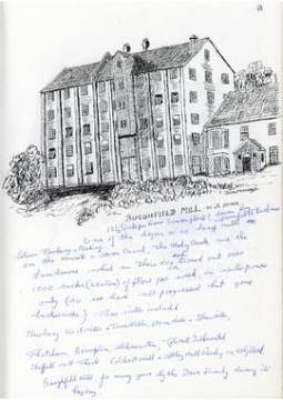 Victoria Mill, Dartford, downstream view with boys on bridge