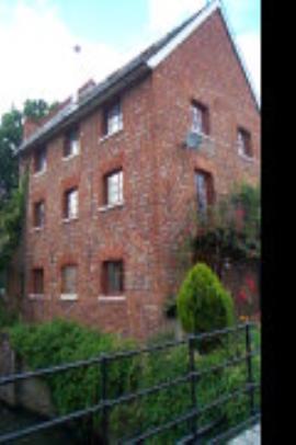 Victoria Mill, Dartford, downstream view with boys on bridge