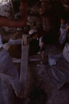 / China. Long Zu. Stamper. Woman stirring pulp.