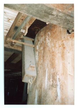 / Evelith Mill, Shifnal – twist peg, meal spout, and levelling screw of a pair of stones, and part of cog pit boarding