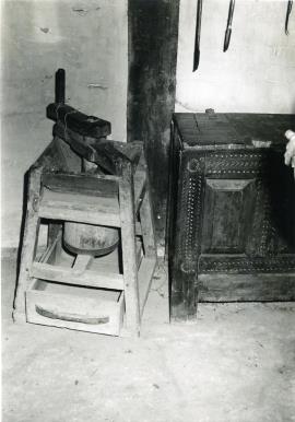 A hand quern on display at the Arnhem Folk Museum (Nederlands Openluchtmuseum).