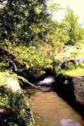 Henley Mill, Wookey, Somerset, Spillway into River Axe from the south