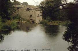 Victoria Mill, Dartford, downstream view with boys on bridge