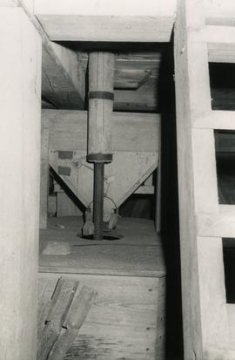 / Hopper and upright shaft in Vikelä Farm magpie mill in Ylöjaäivi, Taivalpohja, Häme