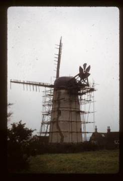 House conversion, scaffolded for repairs, with damaged sails, Waterhall Mill, Patcham quantity