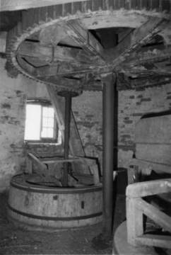 Stone floor and spur wheel of Ives Cross Mill, being the fifth interior photograph.