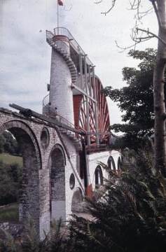 Victoria Mill, Dartford, downstream view with boys on bridge