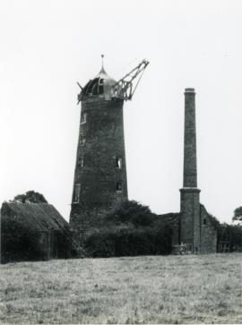 Lelley Mill with no sails and a damaged ogee cap.