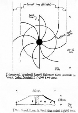 / Leonardo da Vinci horizontal windmill rotor and mill rhynd designs