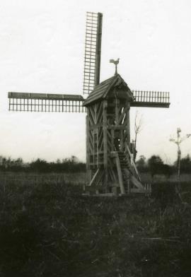 Written in French on the reverse, “Model of a windmill of a French Flanders construction by Abel Deschodt, miller at Wormhoudt (Nord), for Major H. A. Webster at 39 rue d’artois, Pairs. 8 cm”.