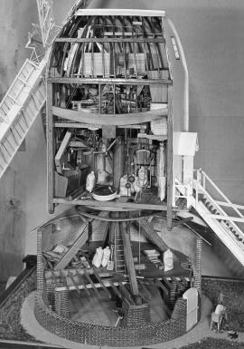 Detailed model of Sprowston Mill made by H. O. Clarke in 1939. Shows the interior from the ground to the top floor