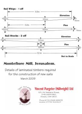 Montefiore mill, details of laminated timbers required for the construction of new sails quantity